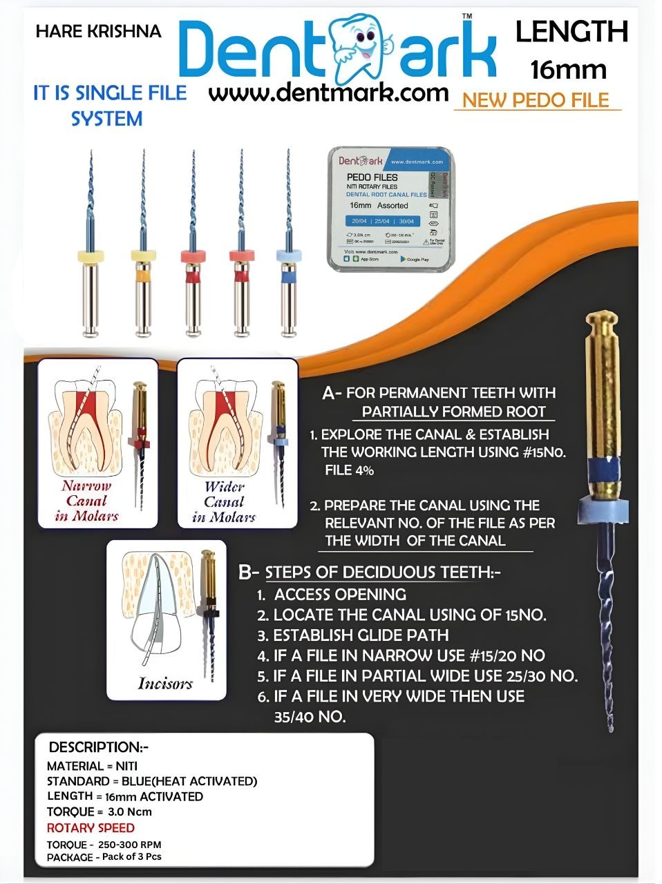Dentmark Pedo Z Blue Rotary Files For Kids - 4% , 16MM (Pediatric)