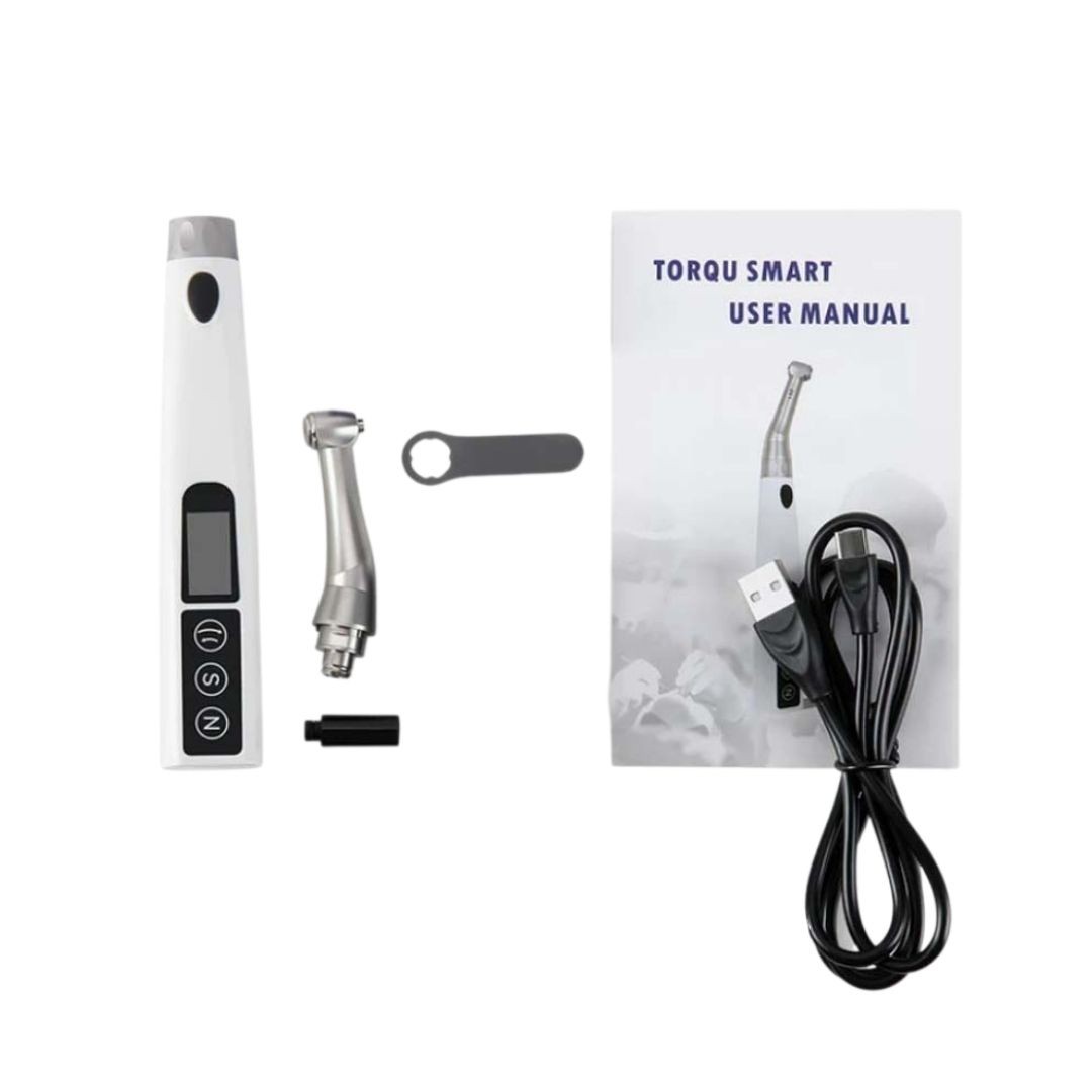 • Dental Wireless Electric Torque Driver Implant Torque Wrench 16pcs Drivers 10-50Ncm 360° Rotating. Wireless precise torque. Low speed and high torque. Convenient for implantation and repair of implant surgery. 16 types of screwdrivers, multifunctional use. Automatically stop when the set torque is encountered under the forward rotation mode. The Contra Angle Can be 360° rotated without take off, to make it easy to use during treatment.