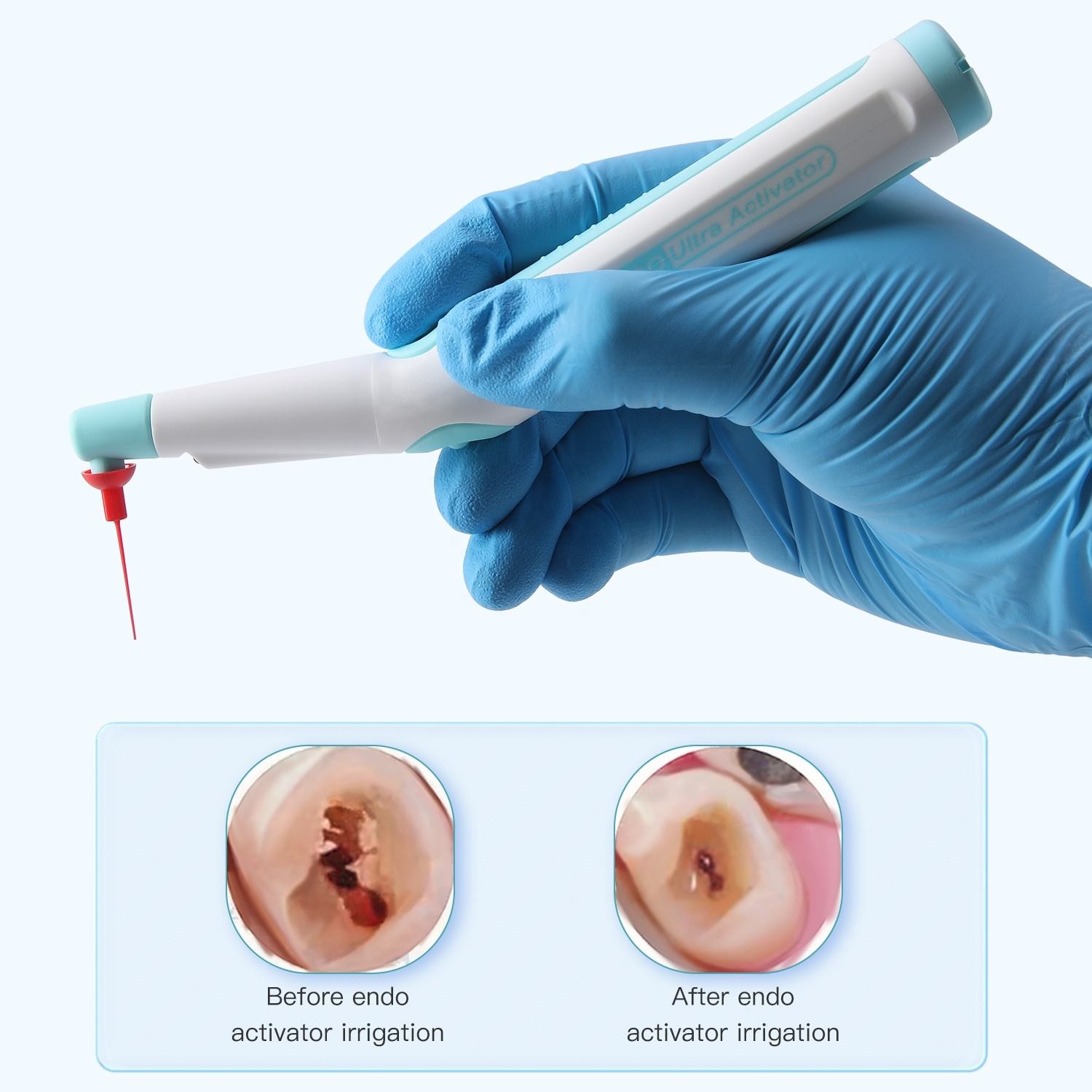 Equipped with a built-in LED light, this endo activator ensures better visibility during procedures, allowing clinicians to work with greater precision and confidence. Its ergonomic, lightweight design and color-coded flexible tips make it an ideal choice for modern endodontic practice.