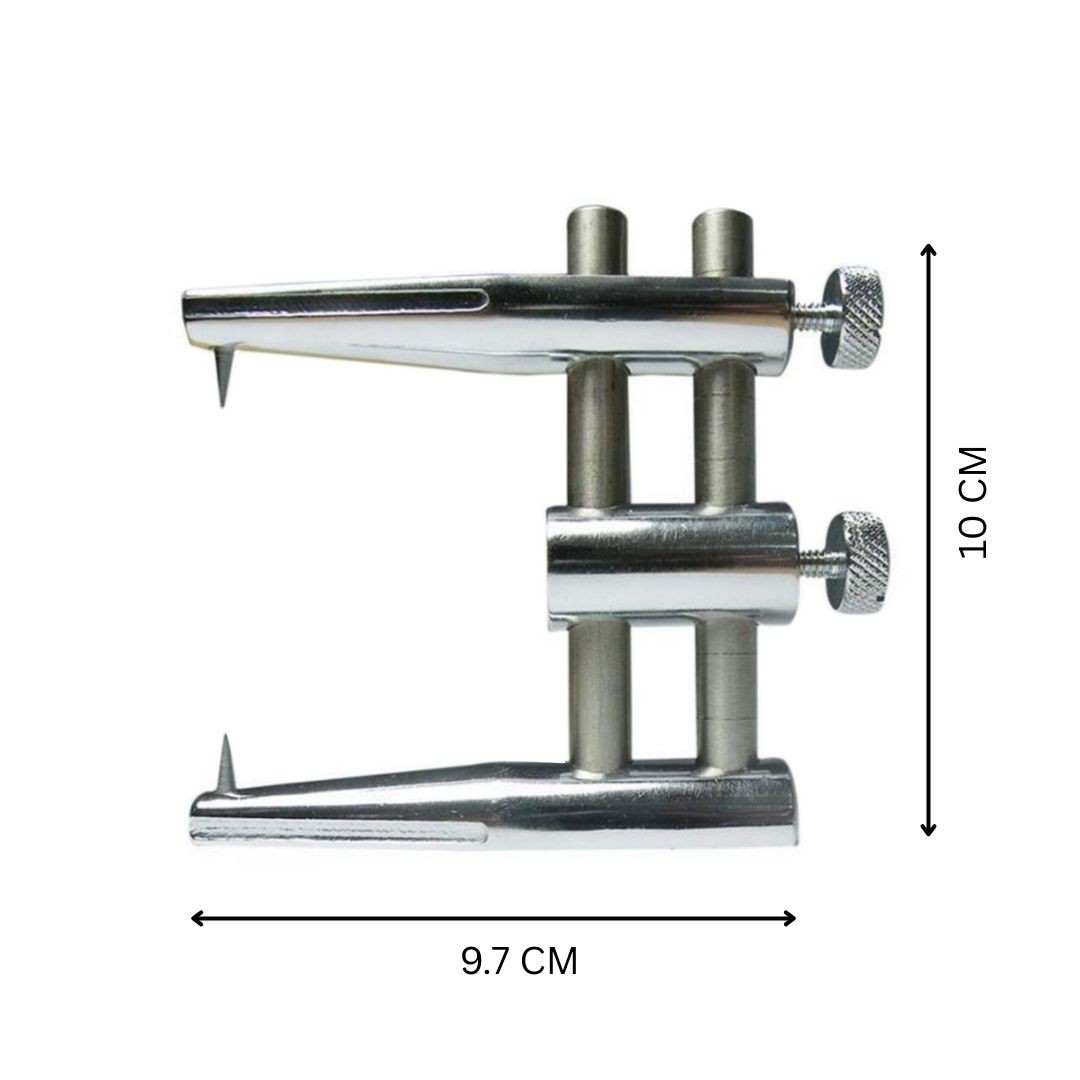Its sturdy dual-column structure and adjustable screw mechanism allow orthodontists and technicians to hold wires or components securely while working, ensuring precision and consistency in every procedure.