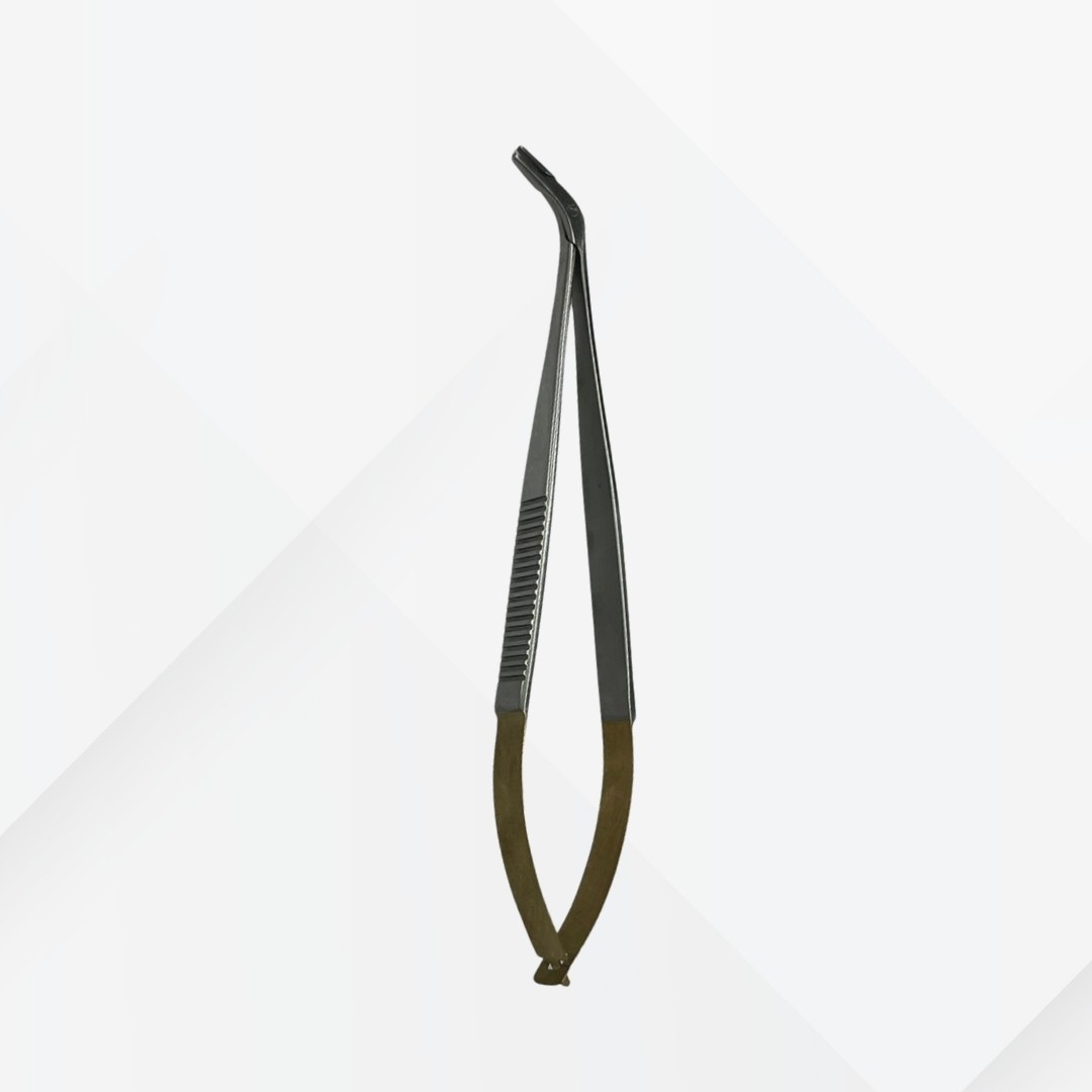 Precision-crafted dental tweezer designed for accurate handling of cotton, dressings, and small dental materials during clinical procedures. Its angled tip and lightweight design provide enhanced control, comfort, and accessibility in hard-to-reach areas.